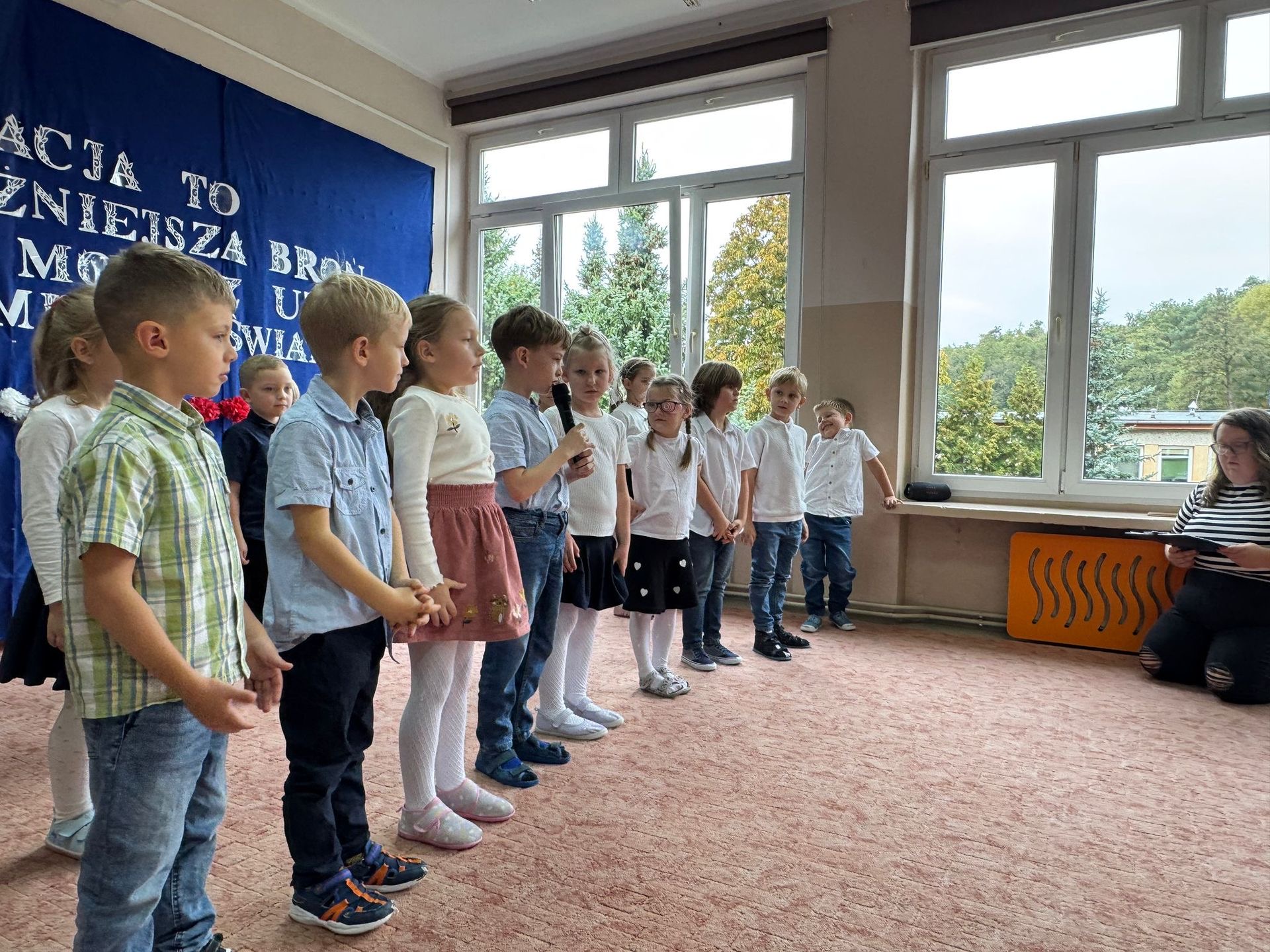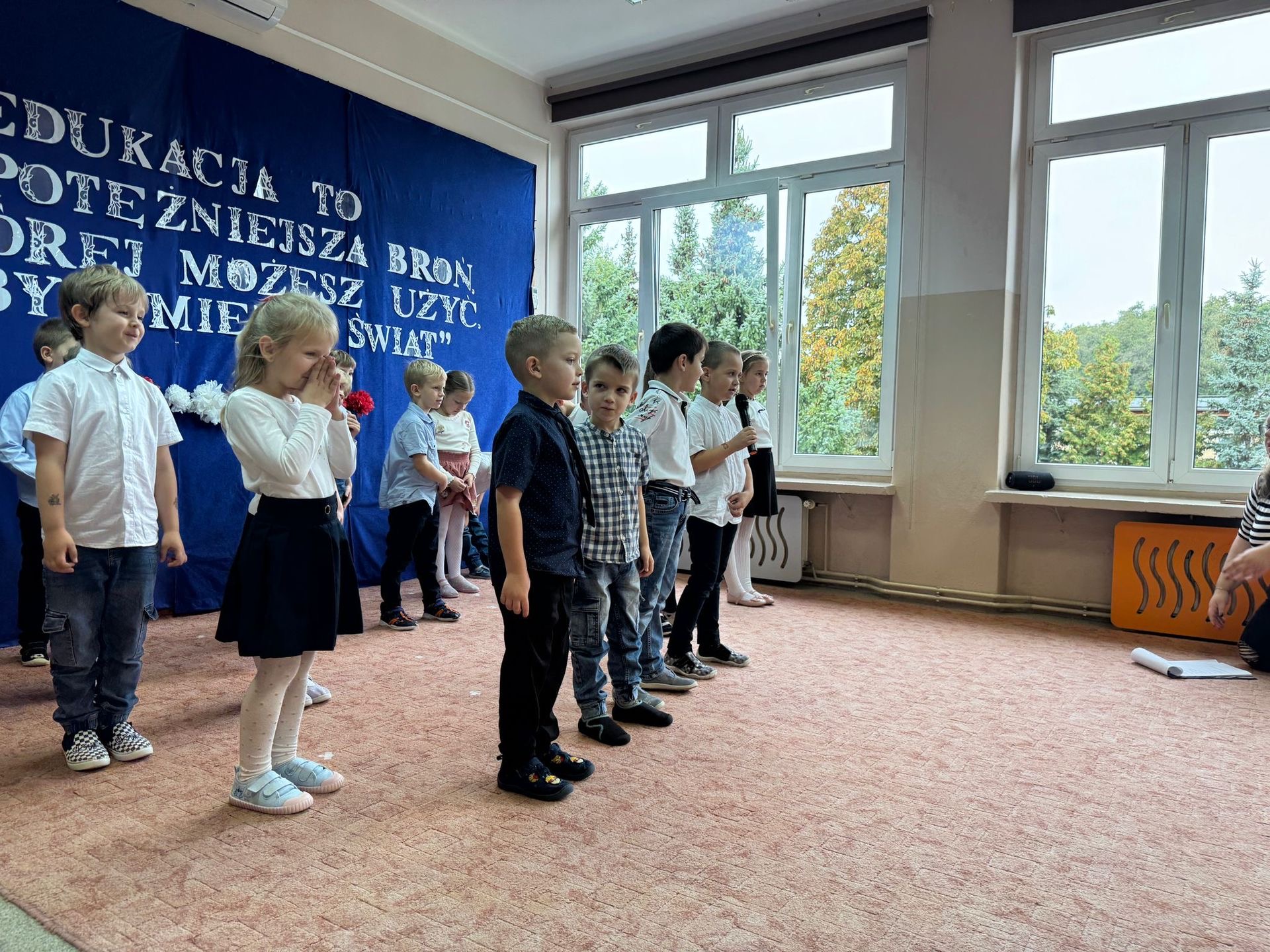 Niezwykle miłym akcentem było także wystąpienie Tomka, który z dumą zaprezentował wiersz w gwarze śląskiej, z którym wcześniej reprezentował nasze przedszkole w konkursie powiatowym. Jego występ spotkał się z ogromnym uznaniem i był pięknym uzupełnieniem całej uroczystości.