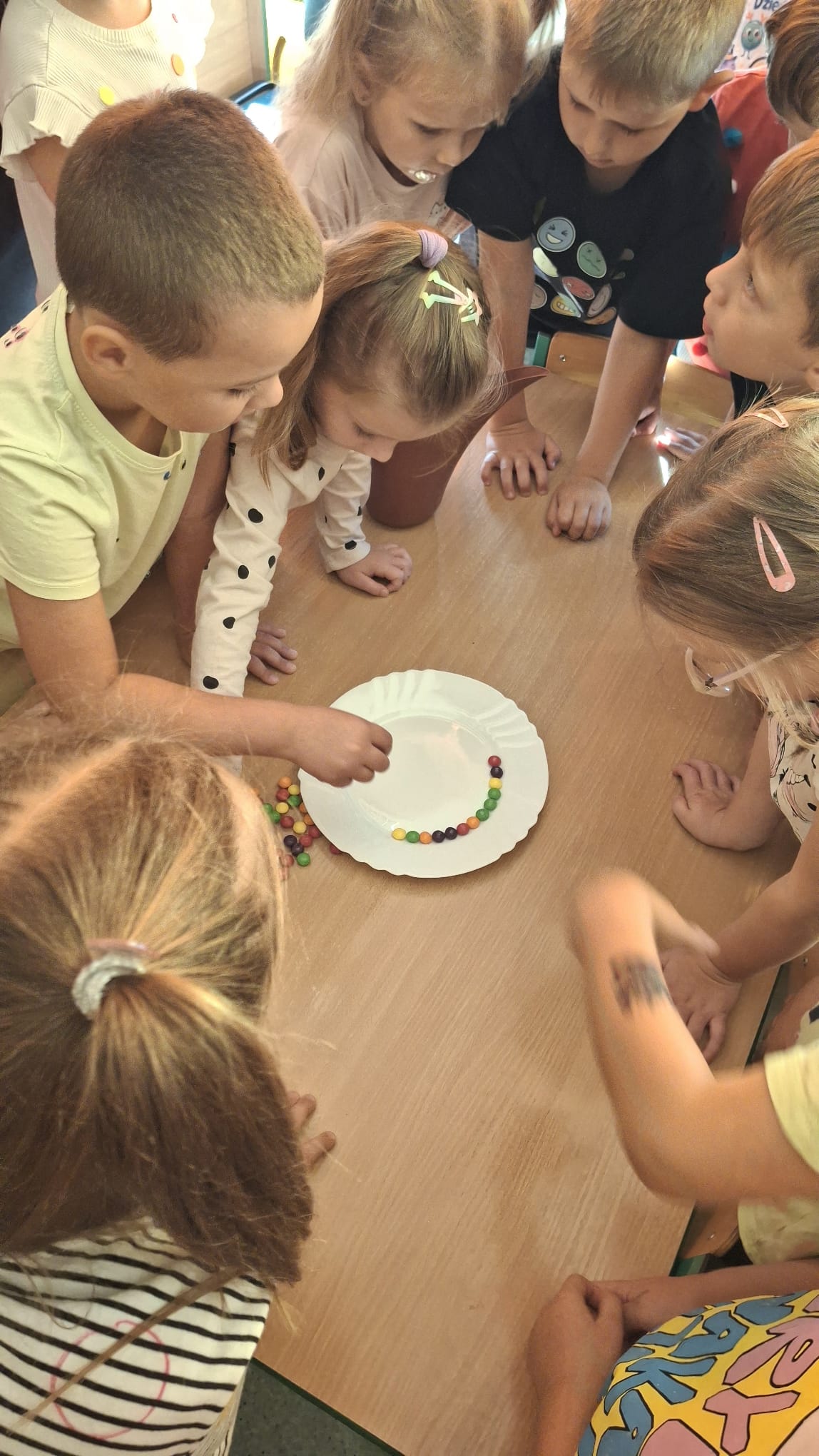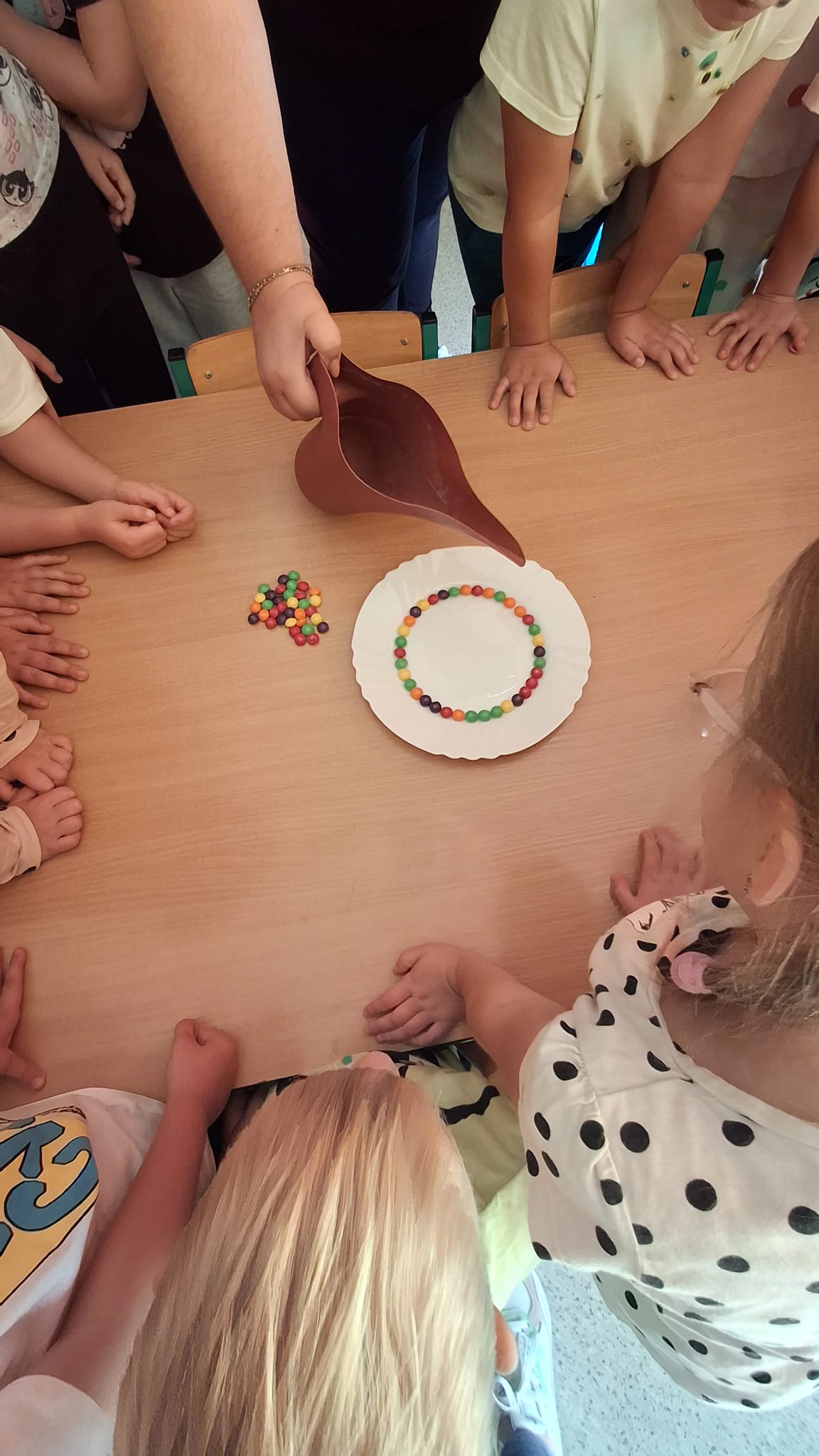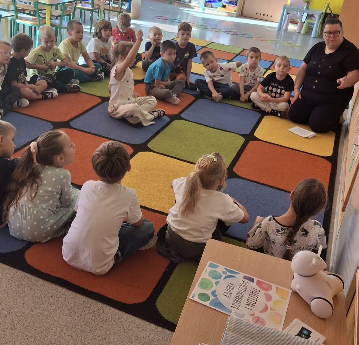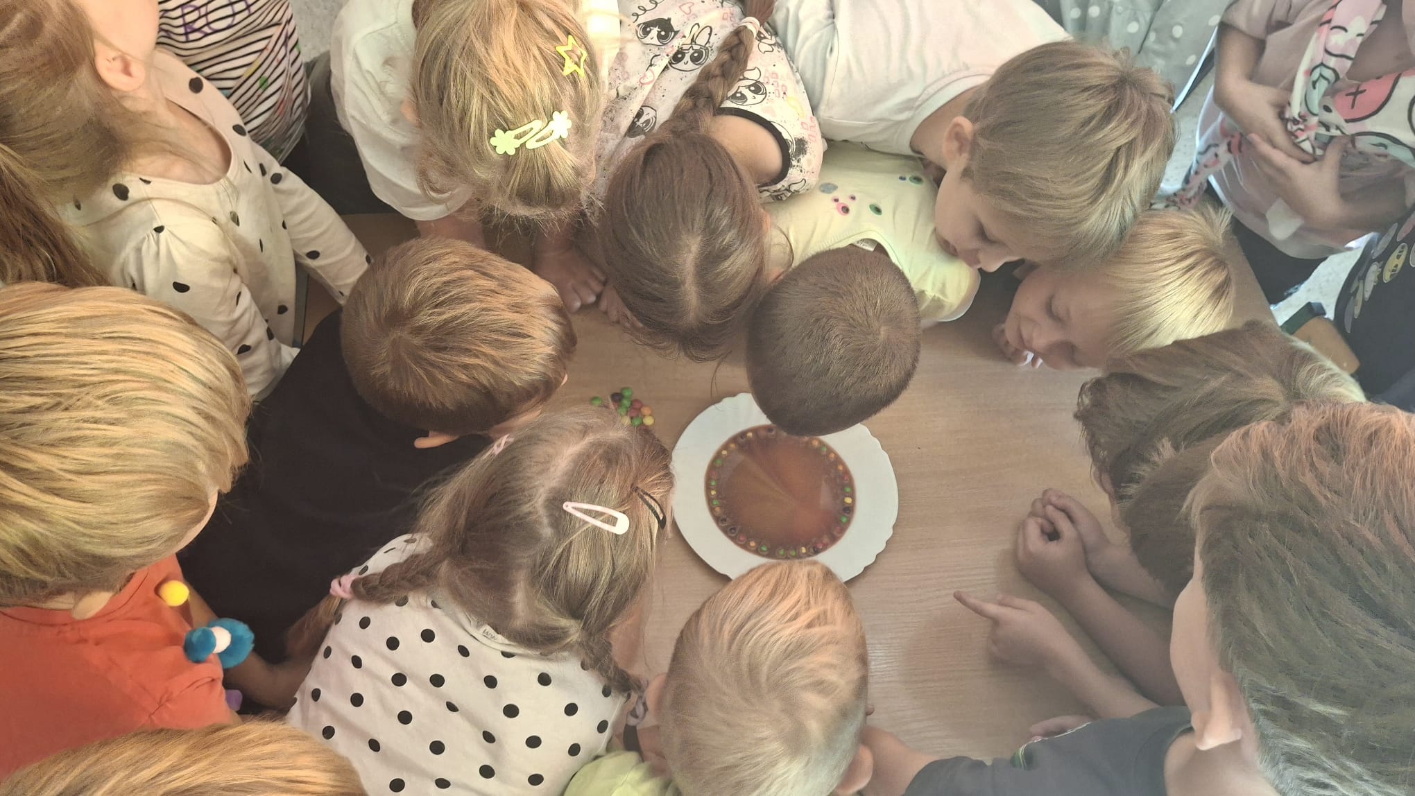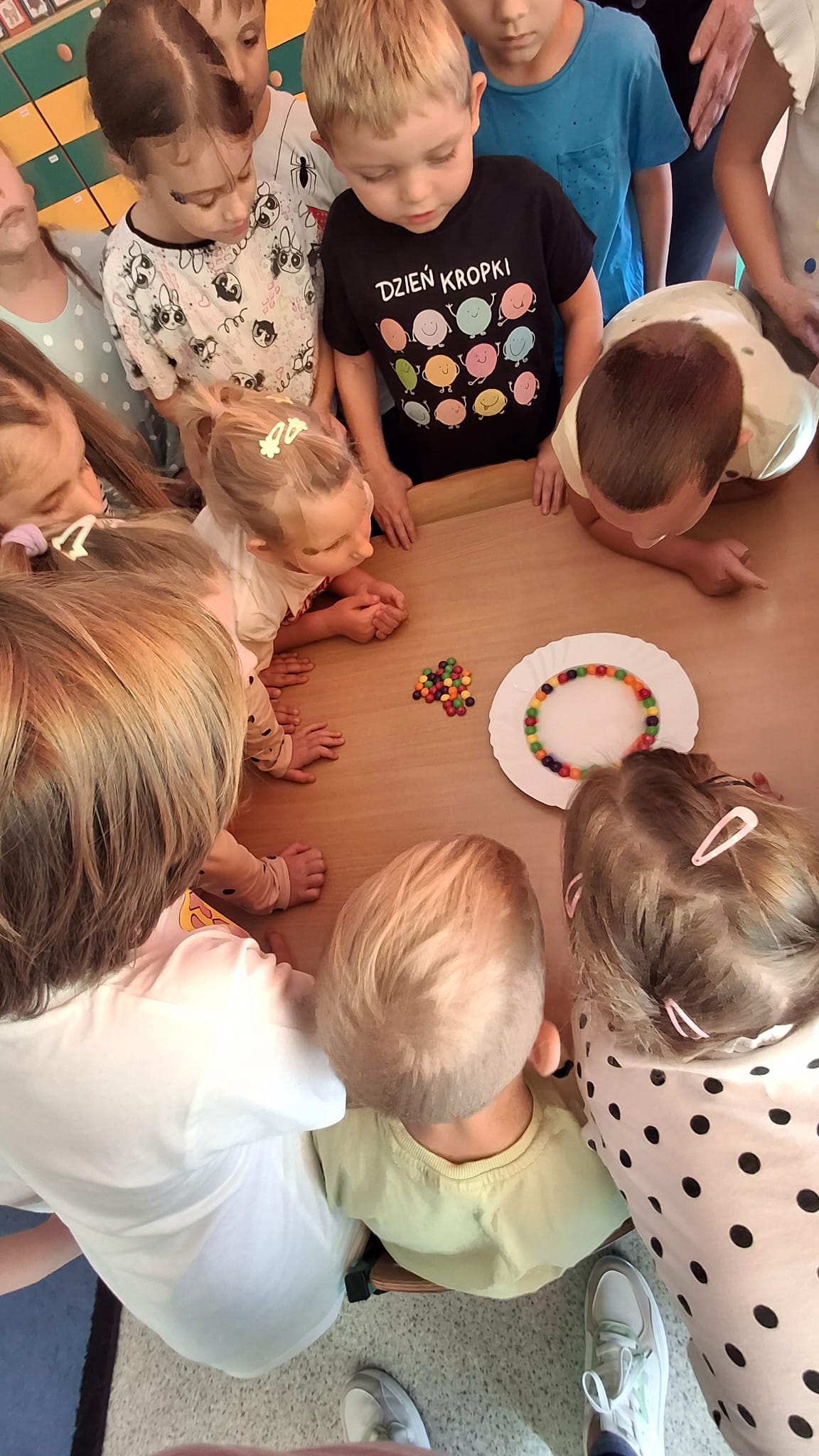 Zapraszamy do obejrzenia naszej galerii zdjęć, gdzie uchwycone zostały wyjątkowe chwile z Dnia Kropki! Dzieci z radością uczestniczyły w rozmowach o talentach i kropkach, inspirując się historią o małej nieśmiałej dziewczynce o imieniu Vasti. Podczas tego dnia Serduszka z zapałem przeszukiwały książki w poszukiwaniu kropek, rozwijając swoją wyobraźnię i kreatywność. Eksperyment „Tęcza na talerzu” przyciągnął uwagę małych odkrywców, którzy z fascynacją obserwowali reakcje kolorów. Nasza innowacja pedagogiczna „Photon w świecie nietypowych dni - kodowanie z robotem” wprowadziła dzieci w świat nowoczesnych technologii i rozwijania logicznego myślenia. Dzięki realizacji Ogólnopolskiego projektu edukacyjnego „Moc Kropek: Odkrywaj, Twórz, Inspiruj”, Serduszka miały możliwość rozwijania swoich talentów w kreatywny sposób.