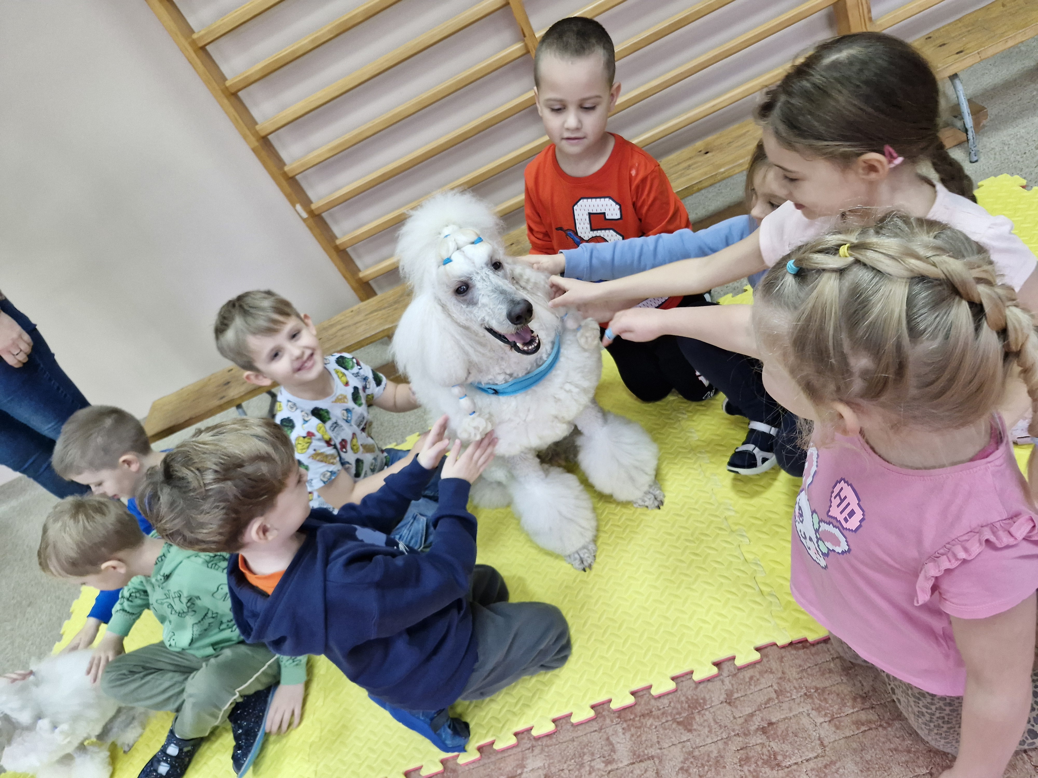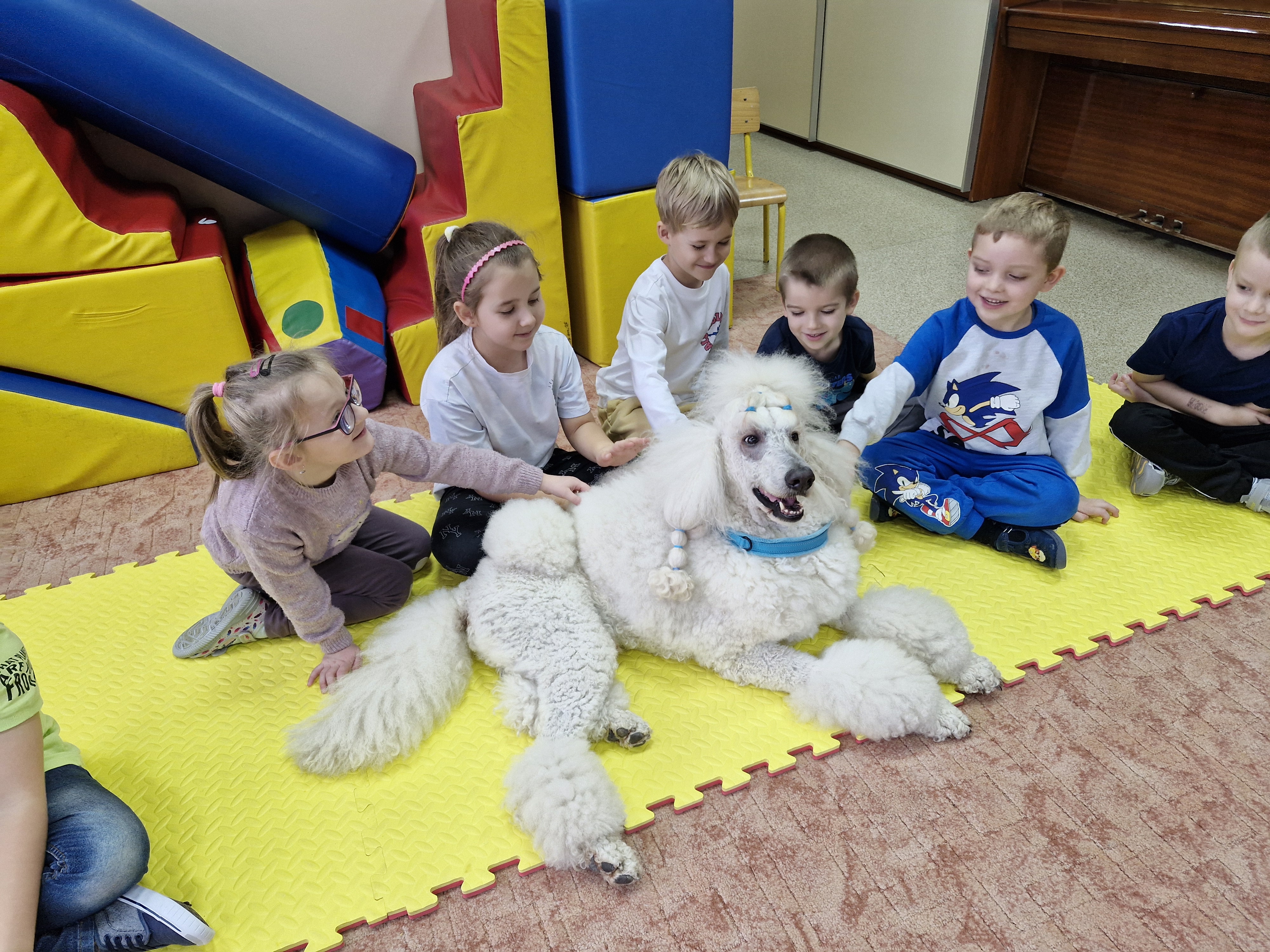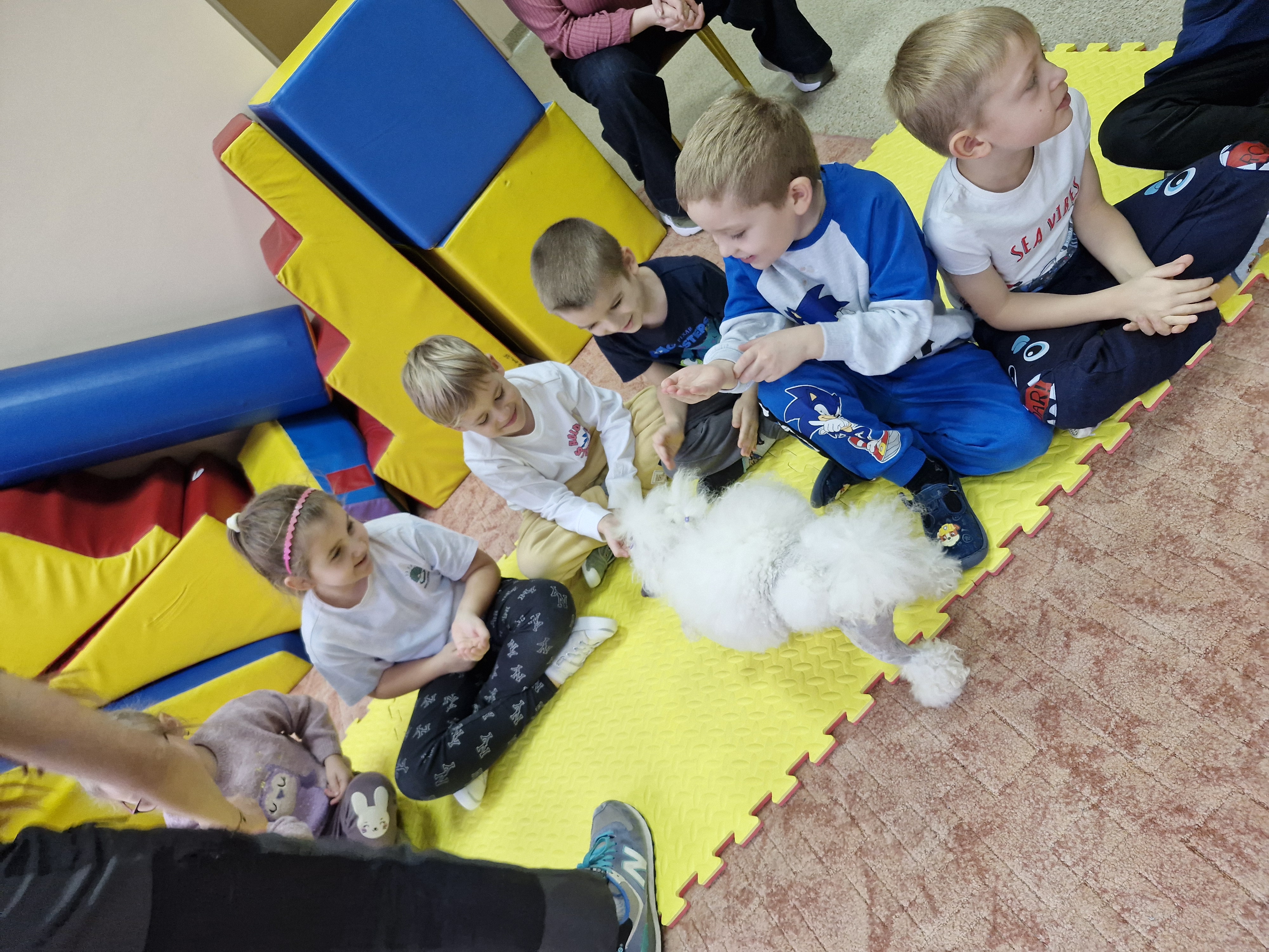 Dzisiejsze spotkanie z pieskami wprowadziło do naszego przedszkola mnóstwo spokoju, czułości i pozytywnej energii.