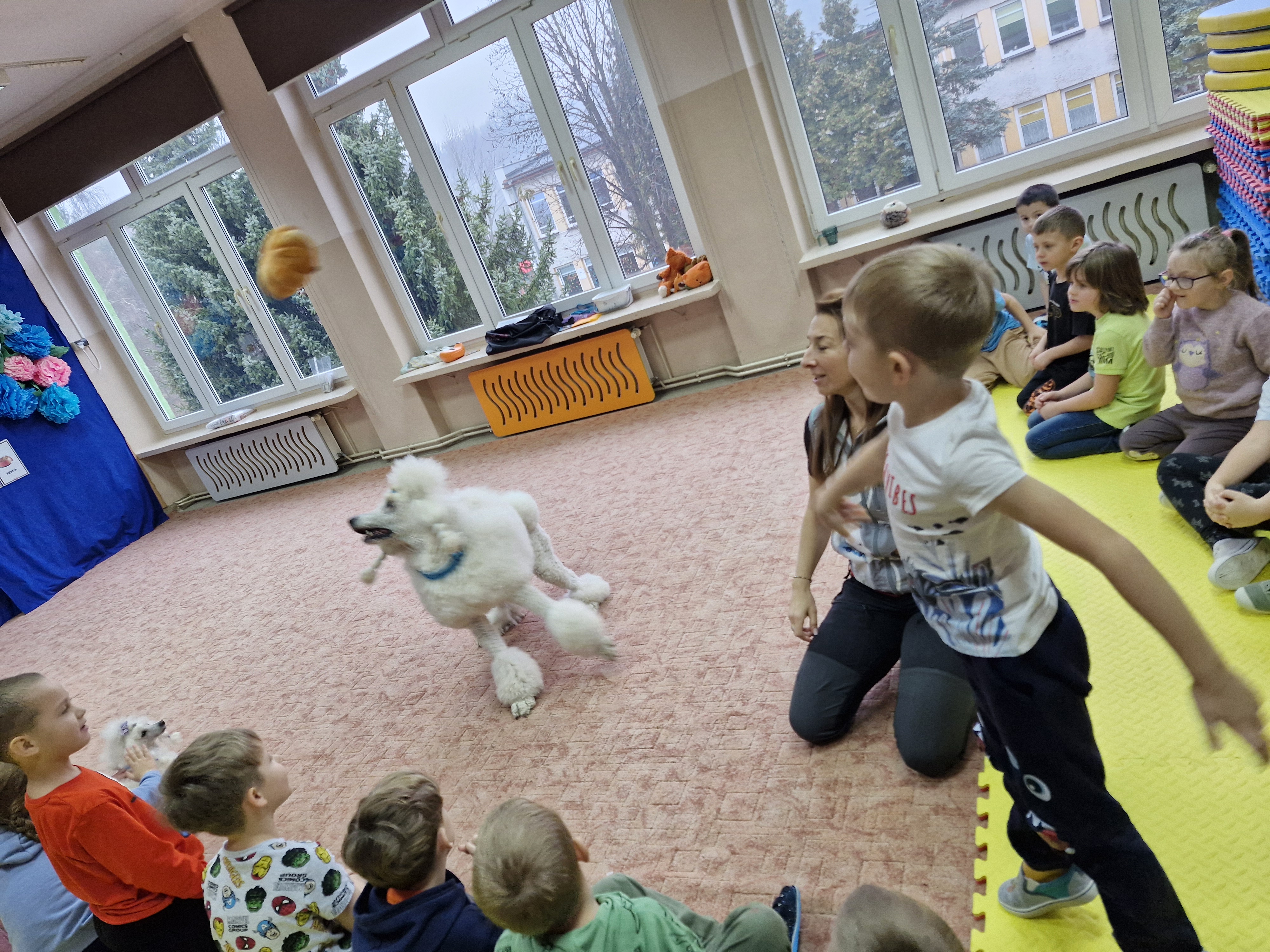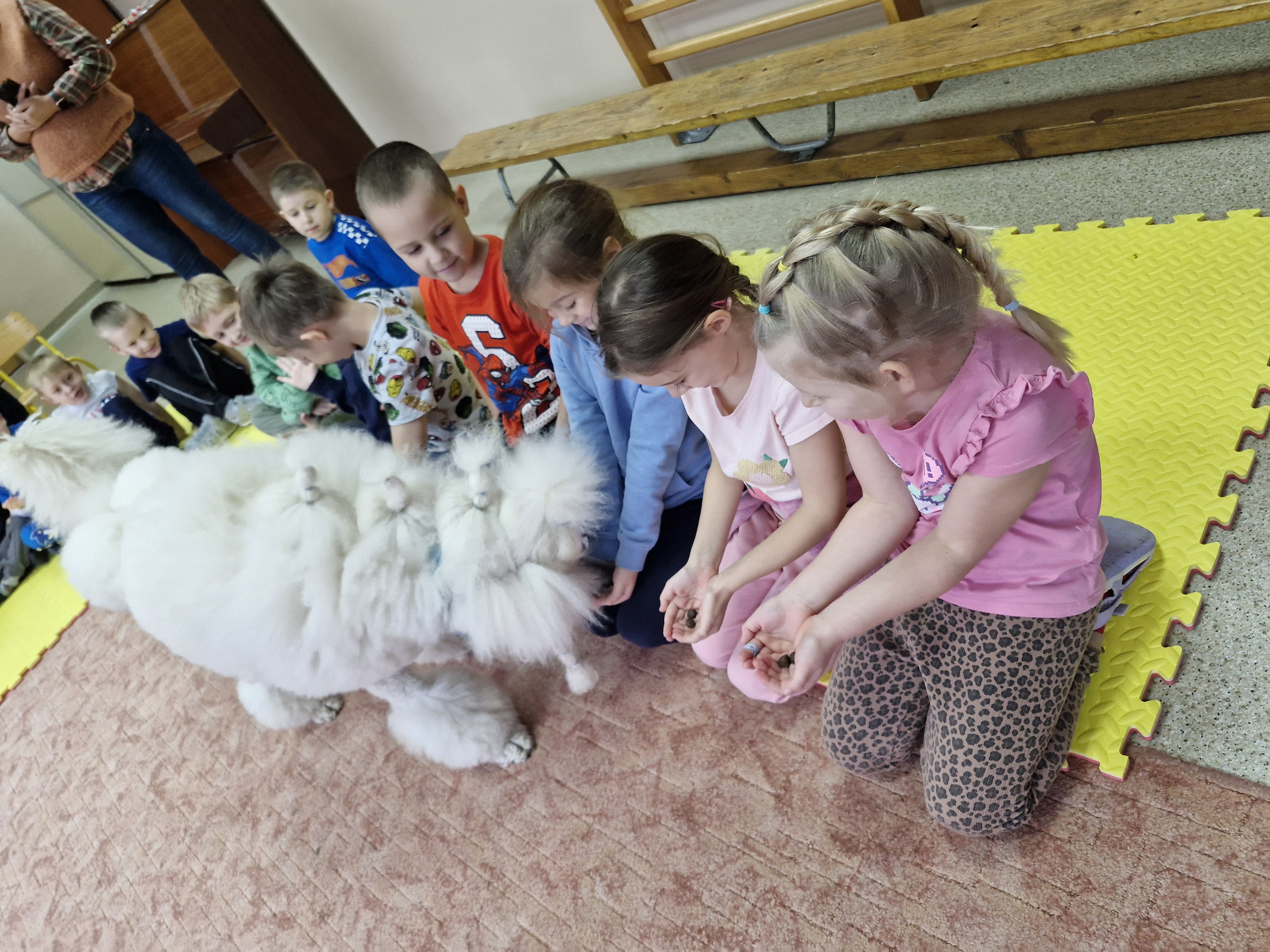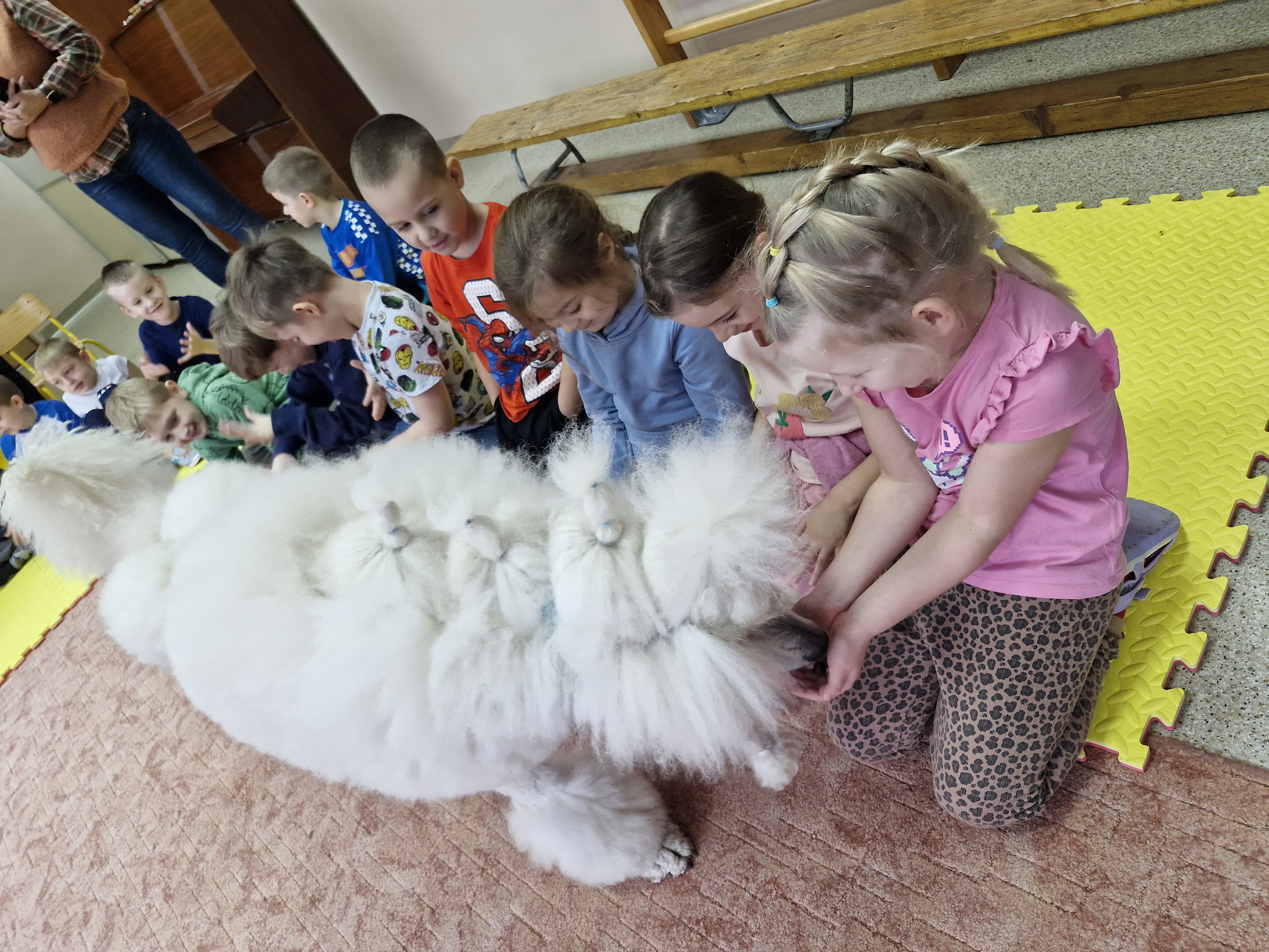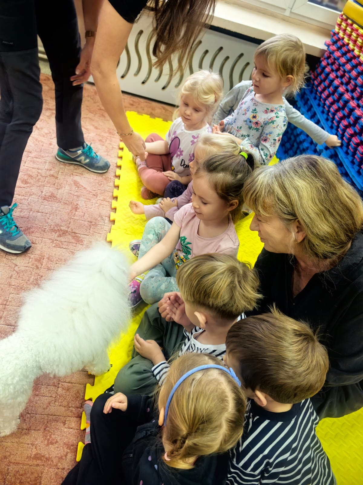 Dzisiejsze spotkanie z pieskami wprowadziło do naszego przedszkola mnóstwo spokoju, czułości i pozytywnej energii.