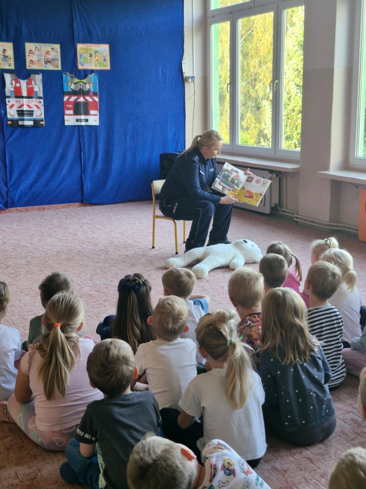 Wielką atrakcją było wspólne czytanie książki „Łukasz ratuje misia, czyli jak udzielić pierwszej pomocy”, które poprowadziła pani policjantka. Historia małego bohatera bardzo zainteresowała dzieci i stała się świetnym pretekstem do rozmowy o empatii, odpowiedzialności i bezpieczeństwie.