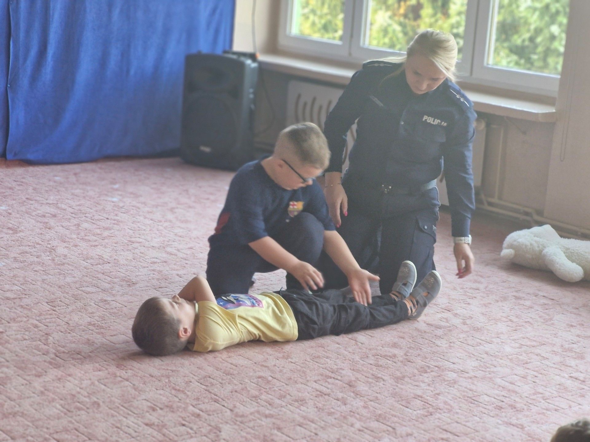 Podczas spotkania dzieci dowiedziały się, jak ważna jest umiejętność udzielania pierwszej pomocy oraz jak prawidłowo wezwać pomoc w sytuacjach zagrożenia. Przedszkolaki poznały najważniejsze numery alarmowe, nauczyły się, kiedy i jak z nich korzystać, a także wzięły udział w praktycznych ćwiczeniach. Wprawdzie projekt i całe spotkanie było dedykowane dla grup starszych, czyli pięciolatków i sześciolatków, to Gwiazdeczki także gościnnie brały czynny udział w tym wydarzeniu.