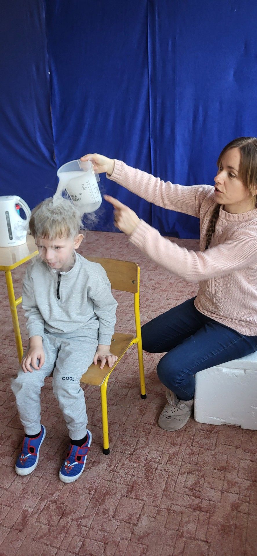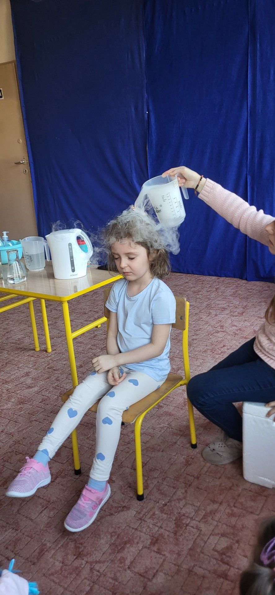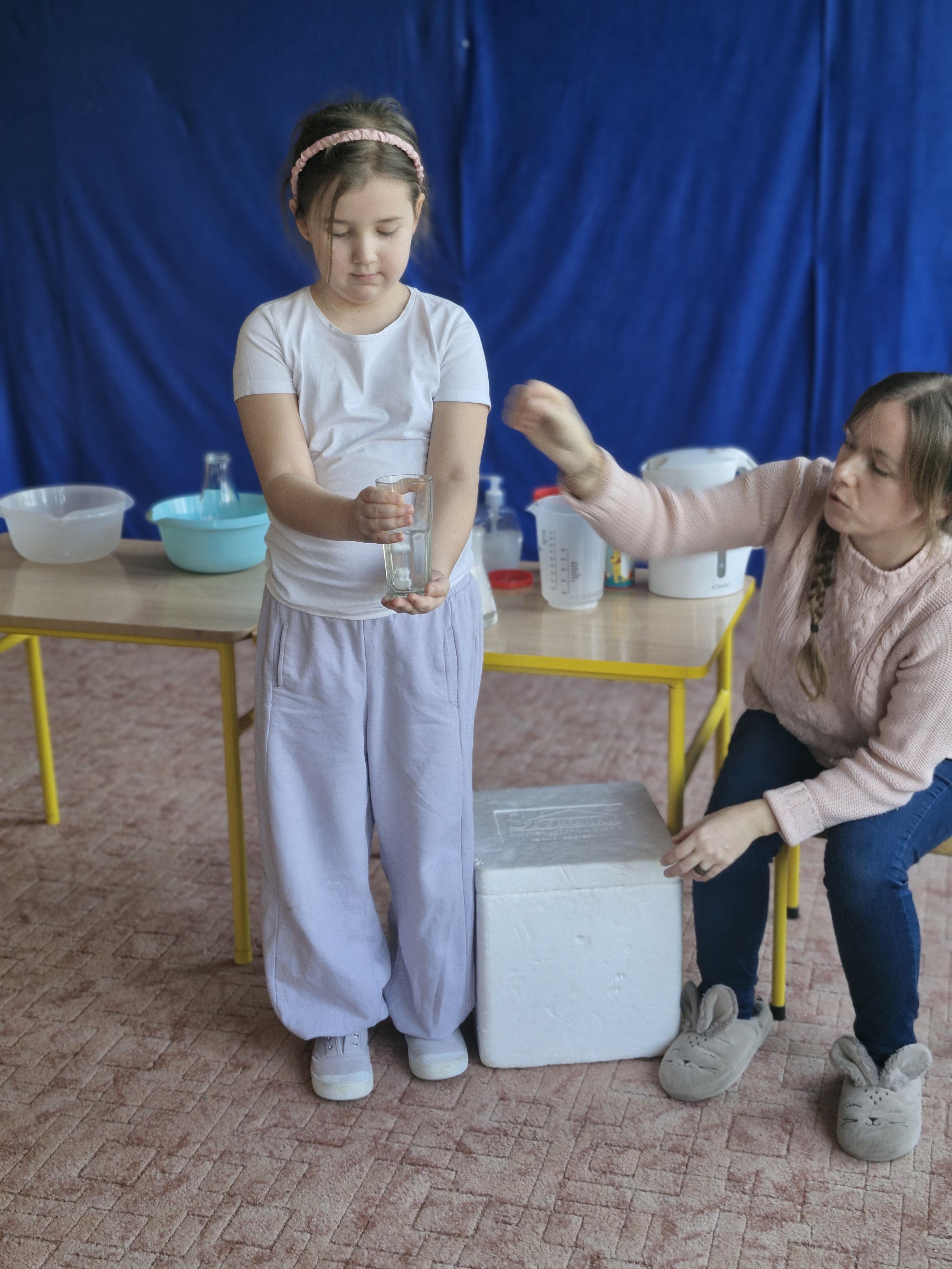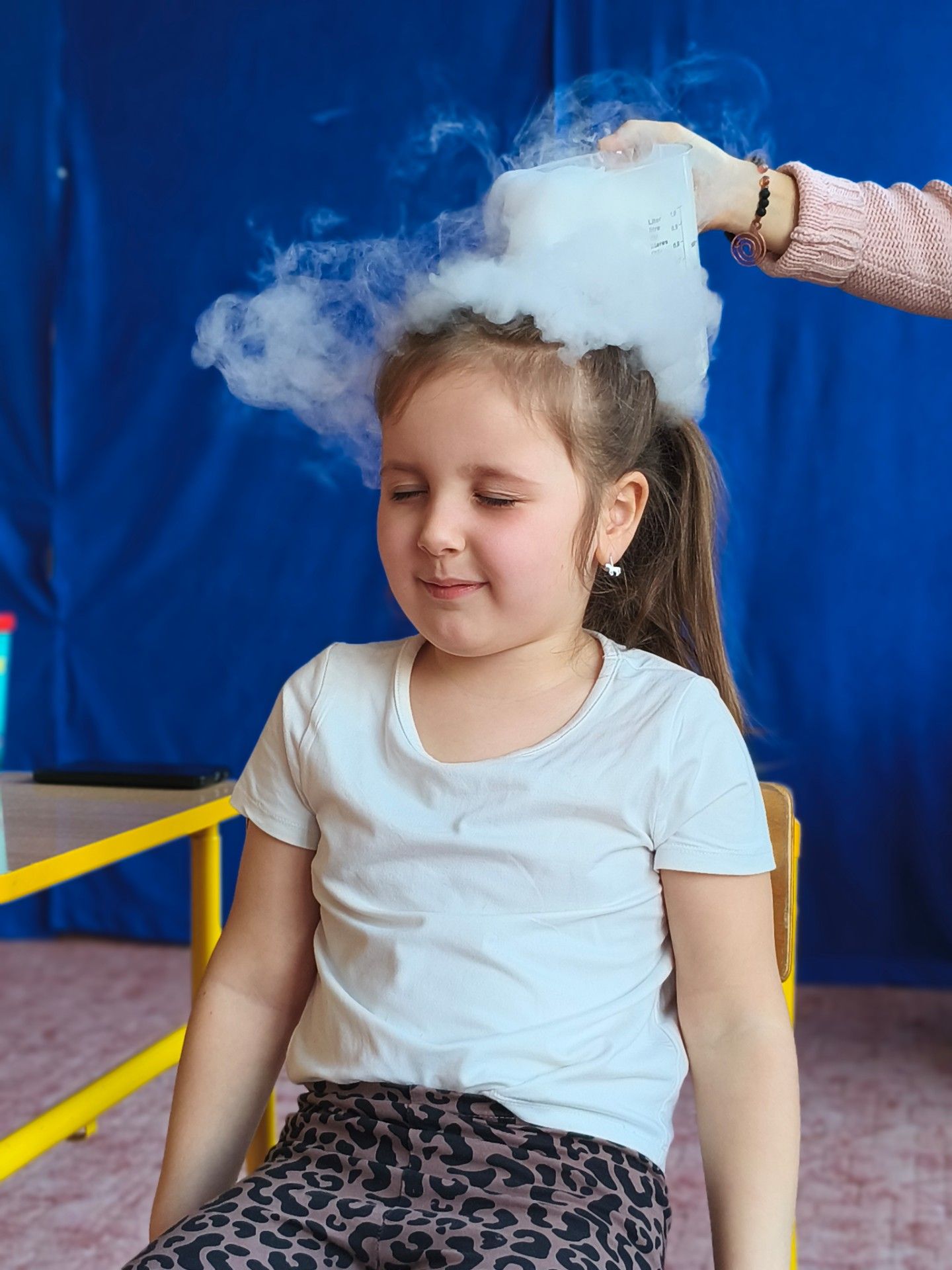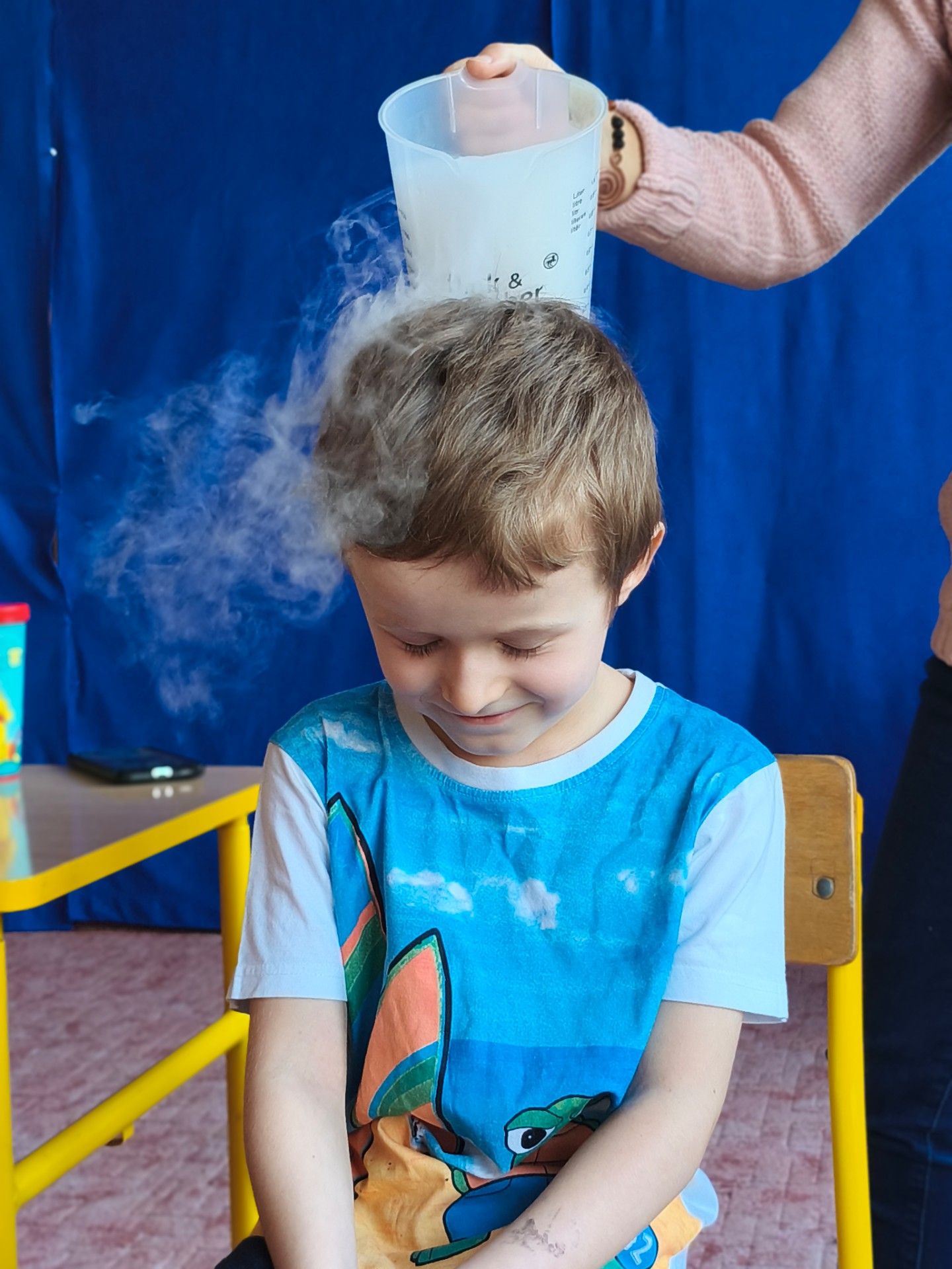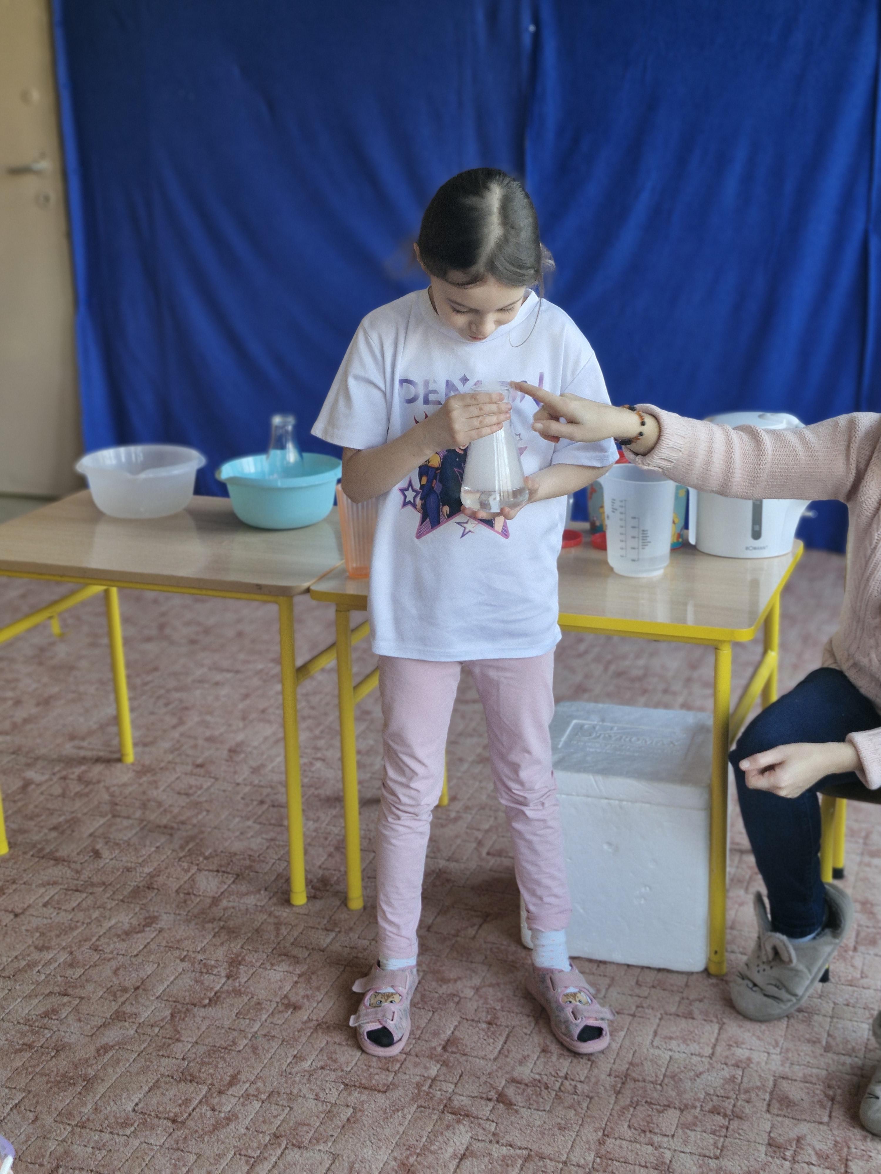 Dzieci z zachwytem obserwowały, jak po połączeniu suchego lodu z wodą powstaje gęsty dym, a po dodaniu płynu tworzy się niezwykła, unosząca się piana . Wyglądało to jak prawdziwa magiczna mikstura!