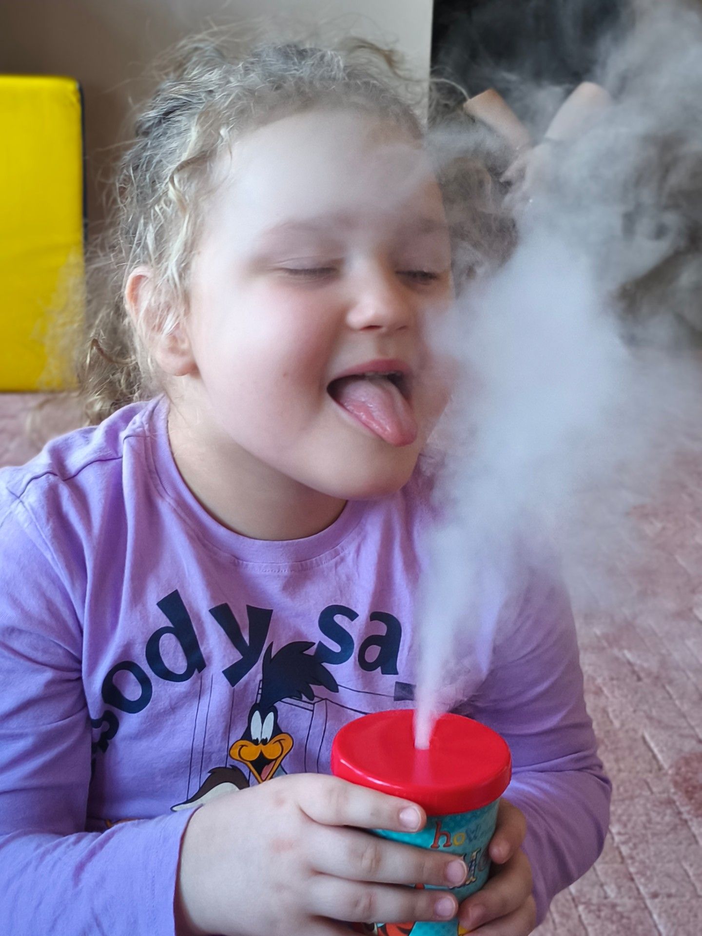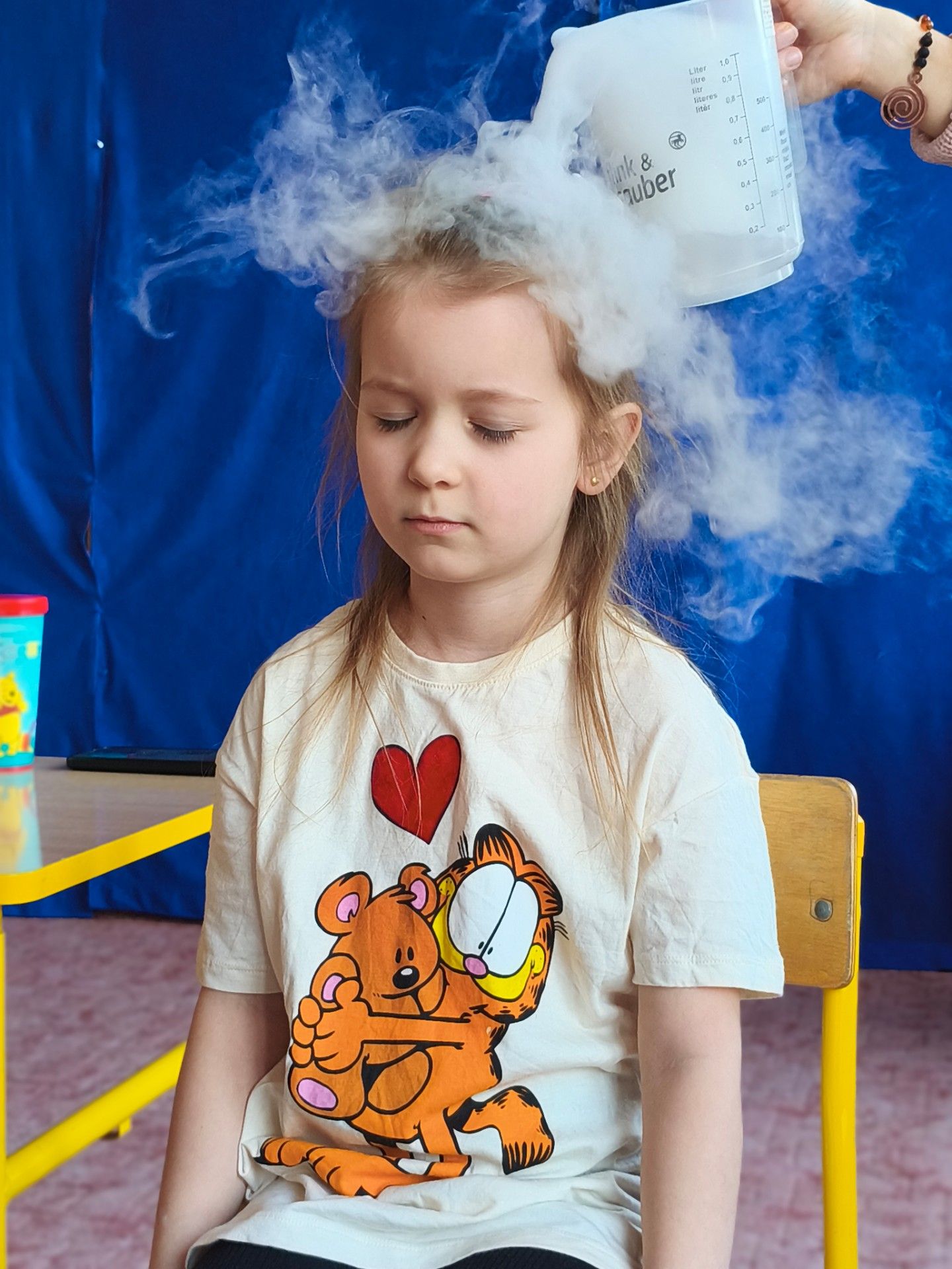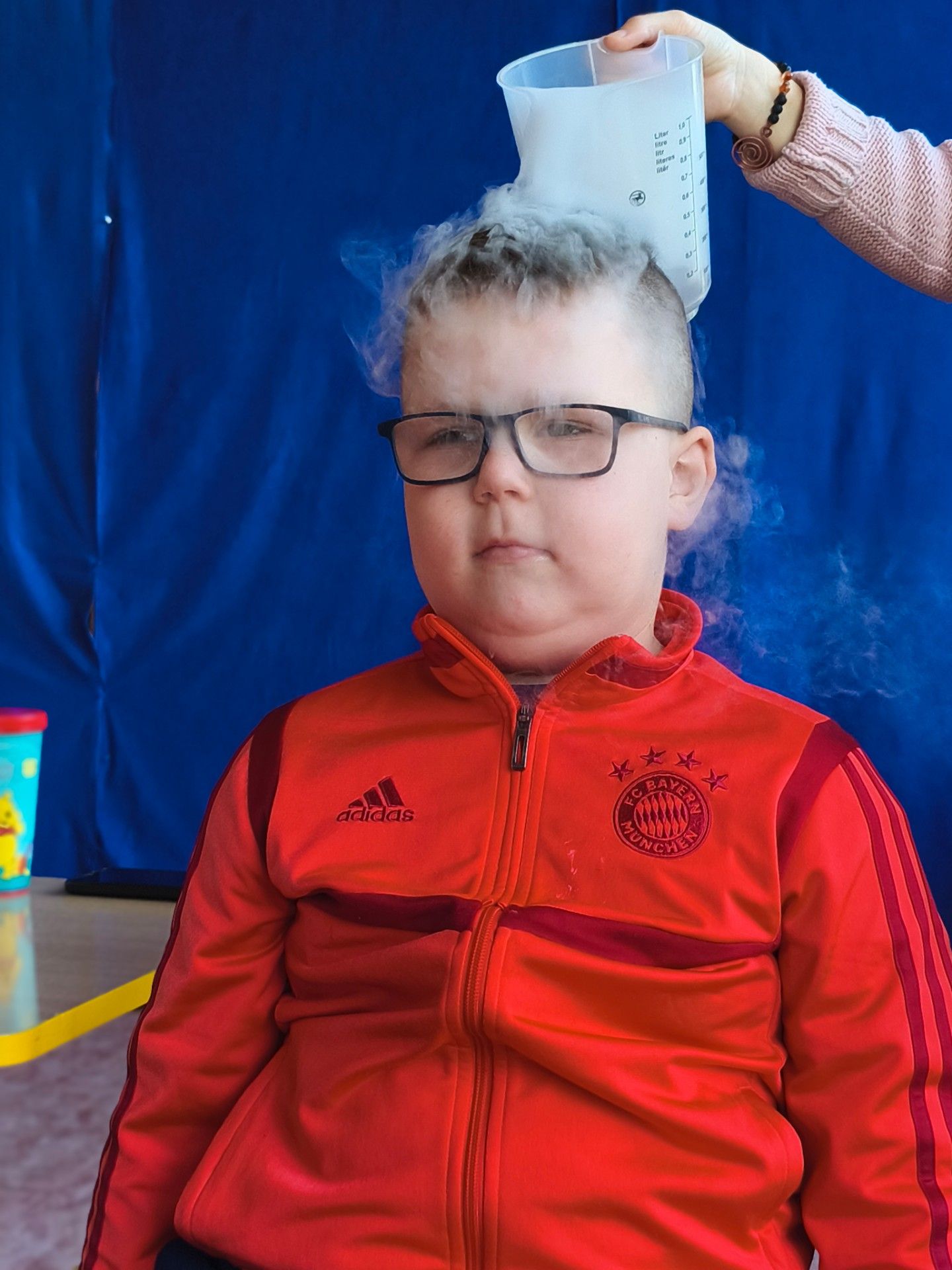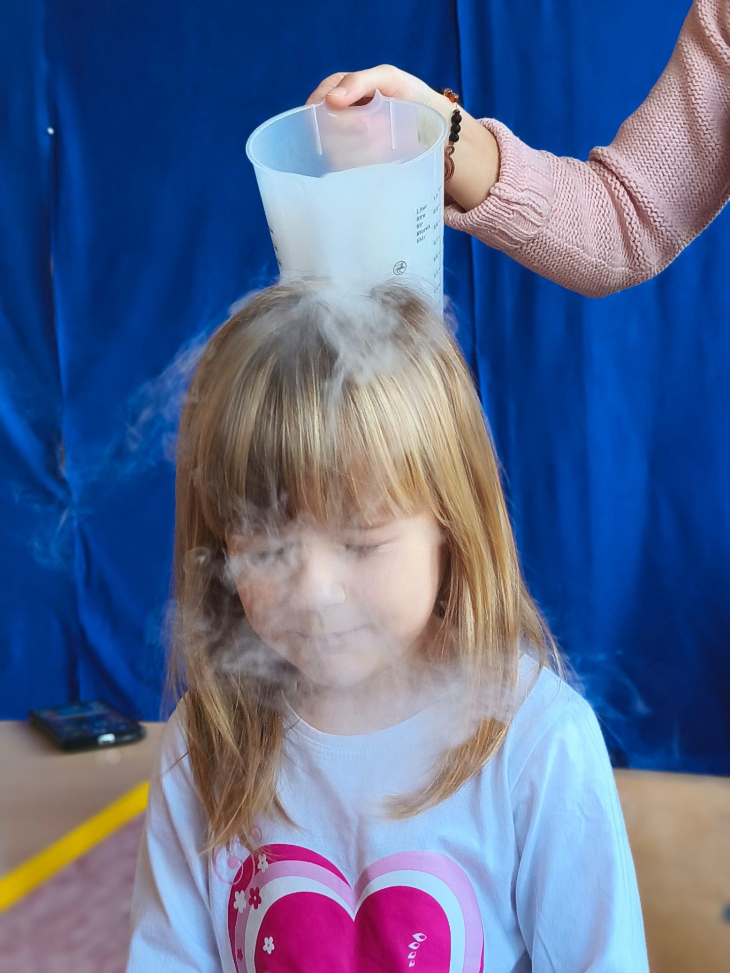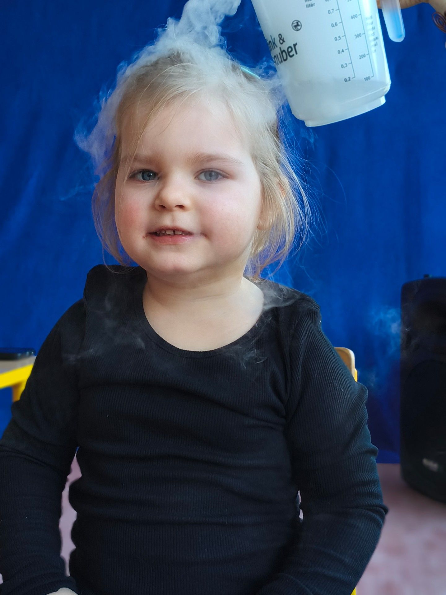 Dzieci z zachwytem obserwowały, jak po połączeniu suchego lodu z wodą powstaje gęsty dym, a po dodaniu płynu tworzy się niezwykła, unosząca się piana . Wyglądało to jak prawdziwa magiczna mikstura!