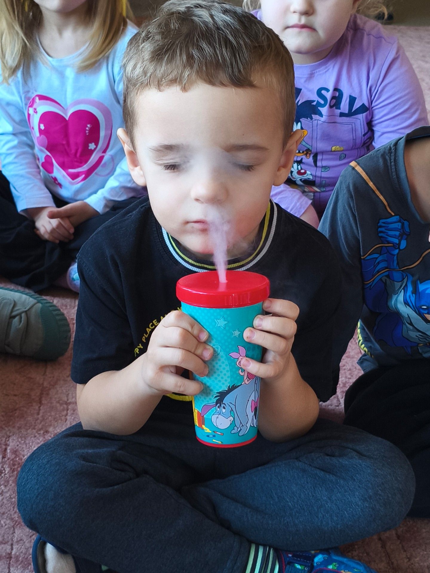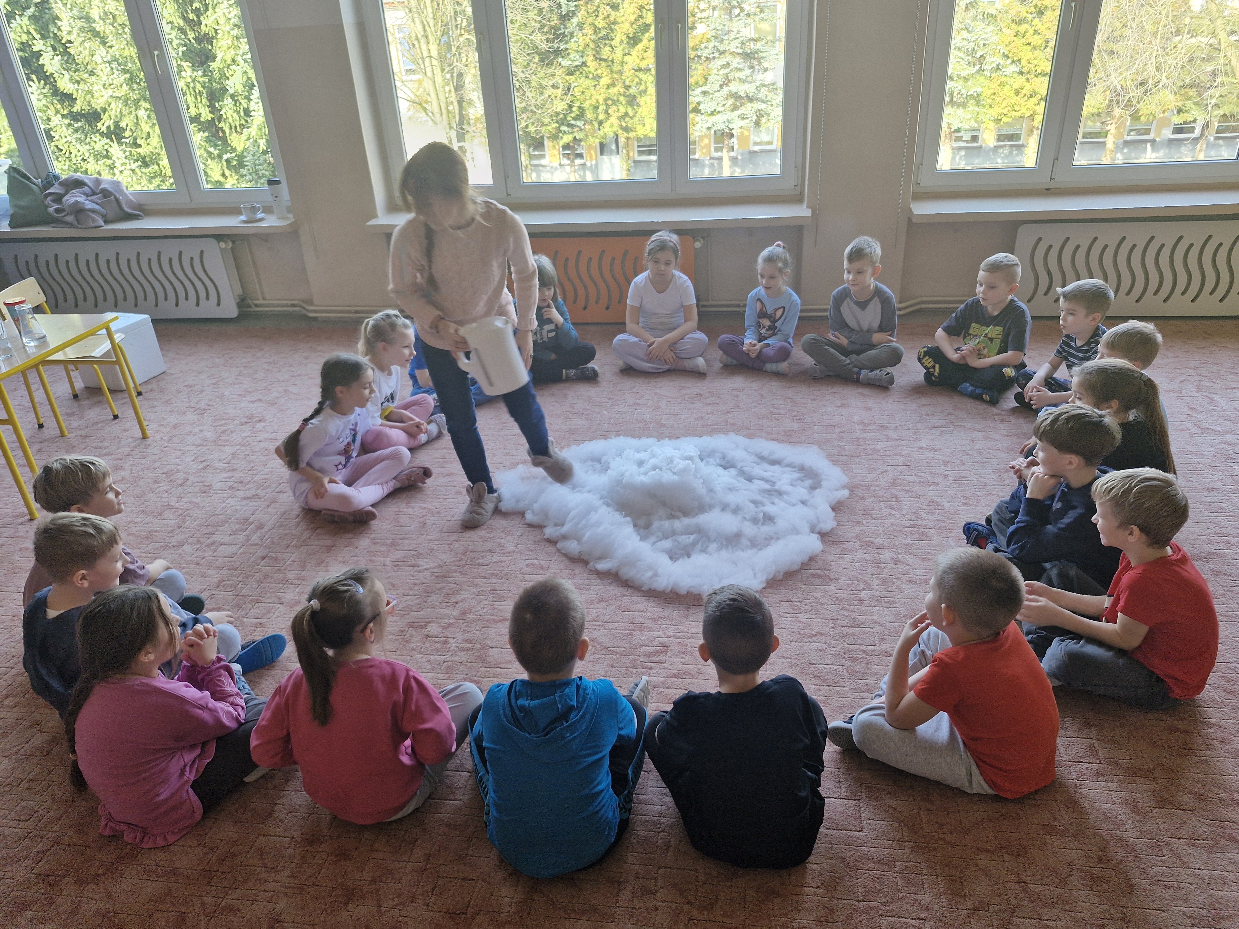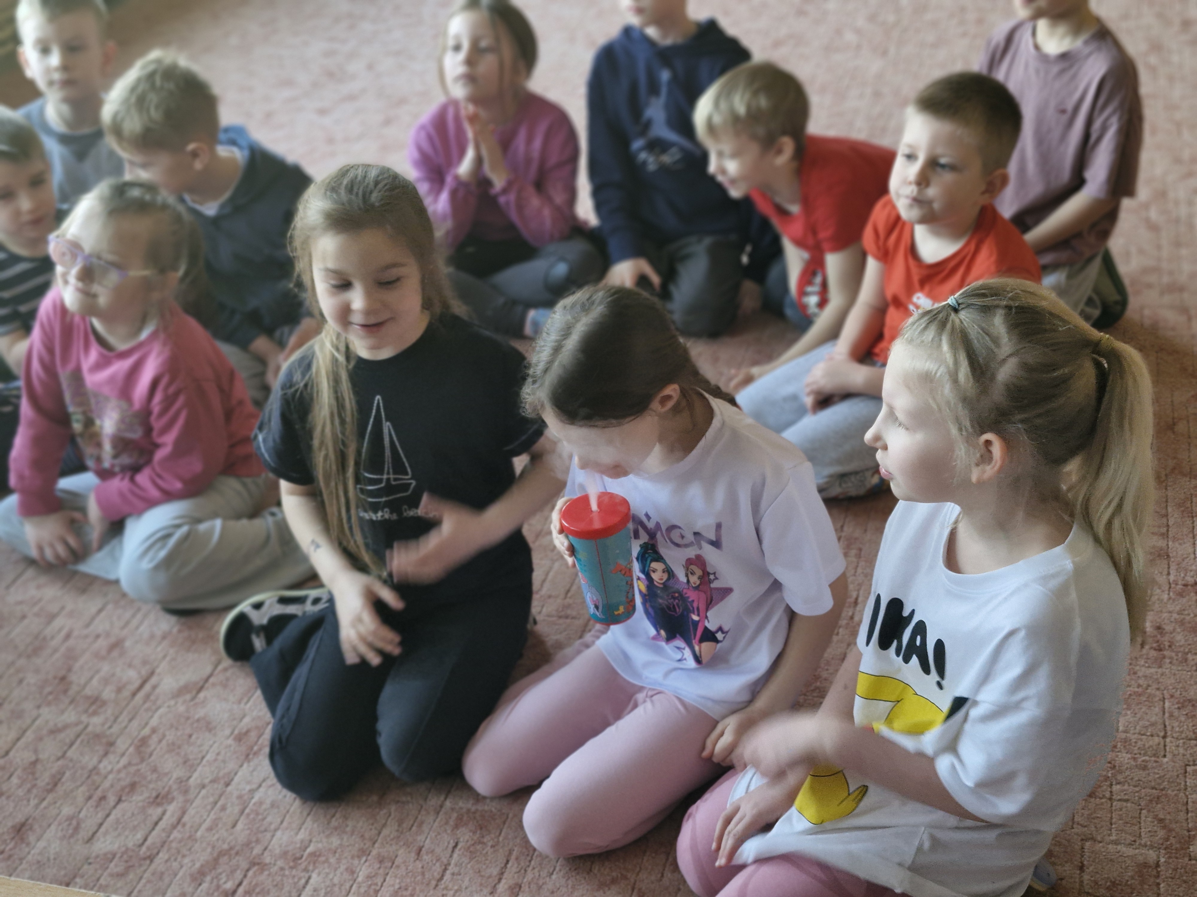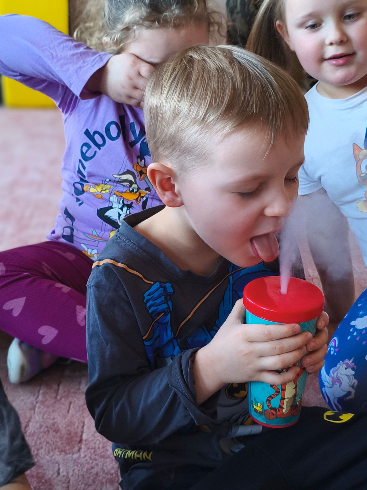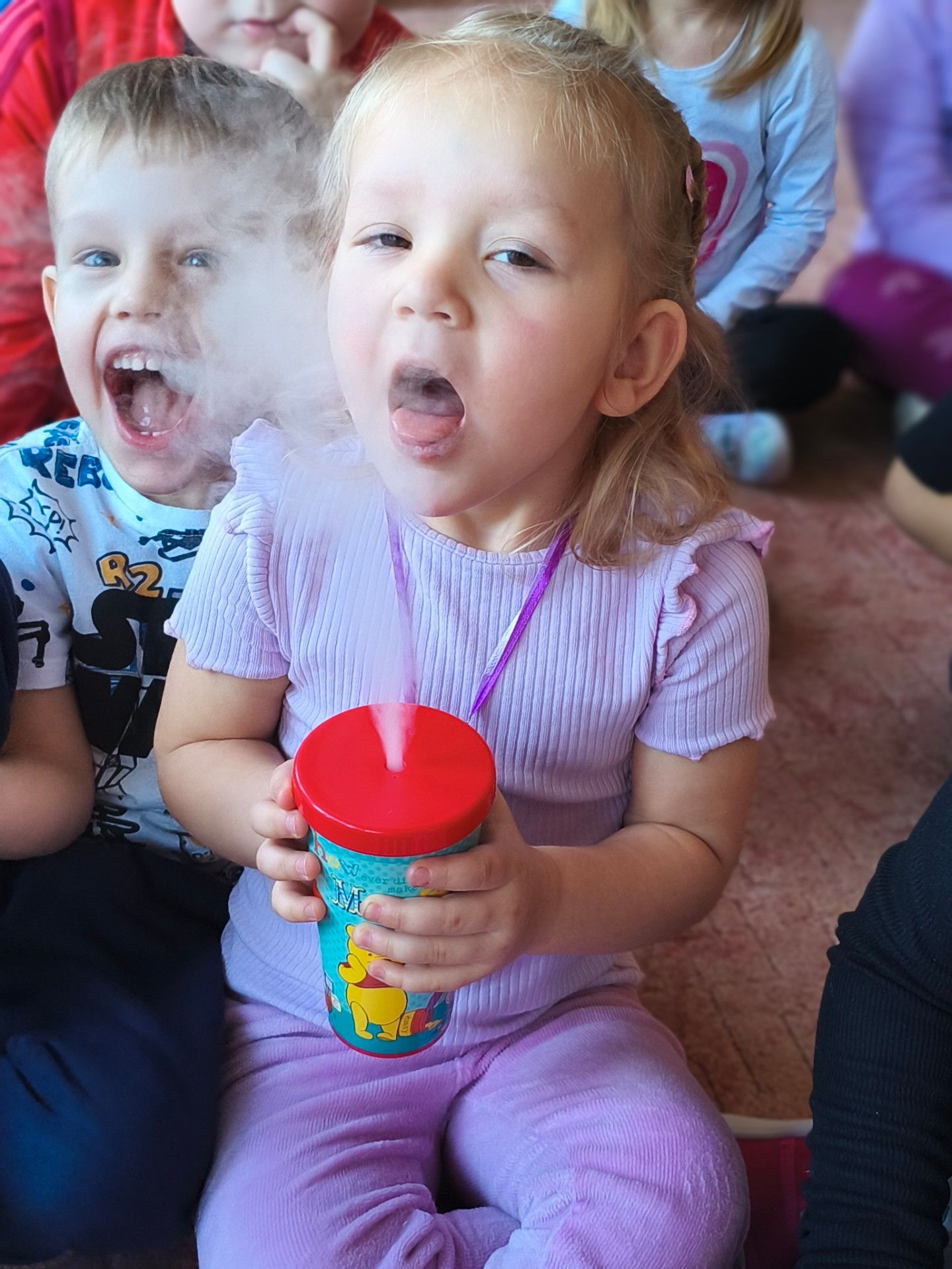 Przedszkolaki dowiedziały się, dlaczego suchy lód jest tak bardzo zimny oraz jak bezpiecznie wykonywać doświadczenia. Było mnóstwo radości, ciekawych pytań i okrzyków zachwytu.