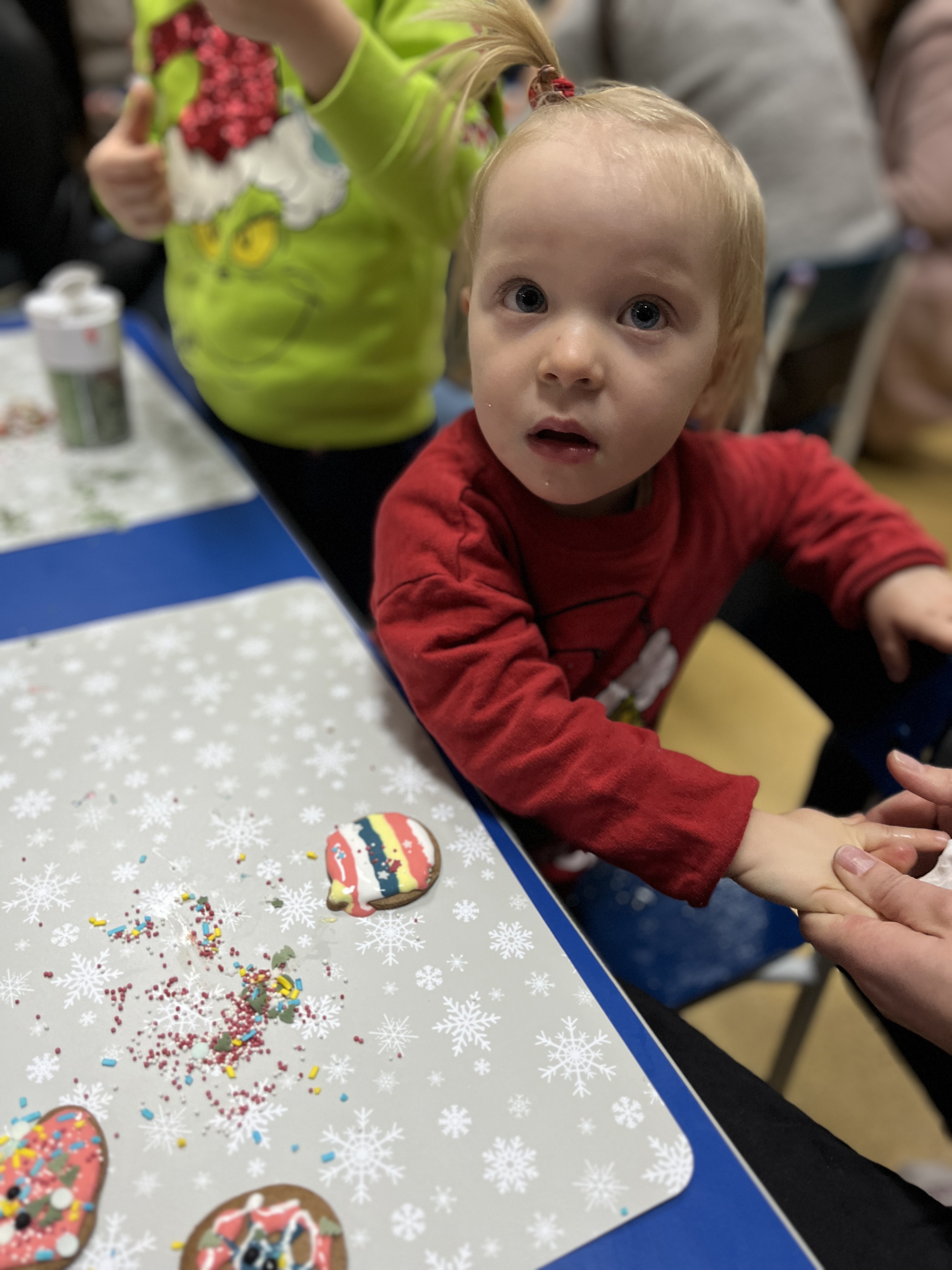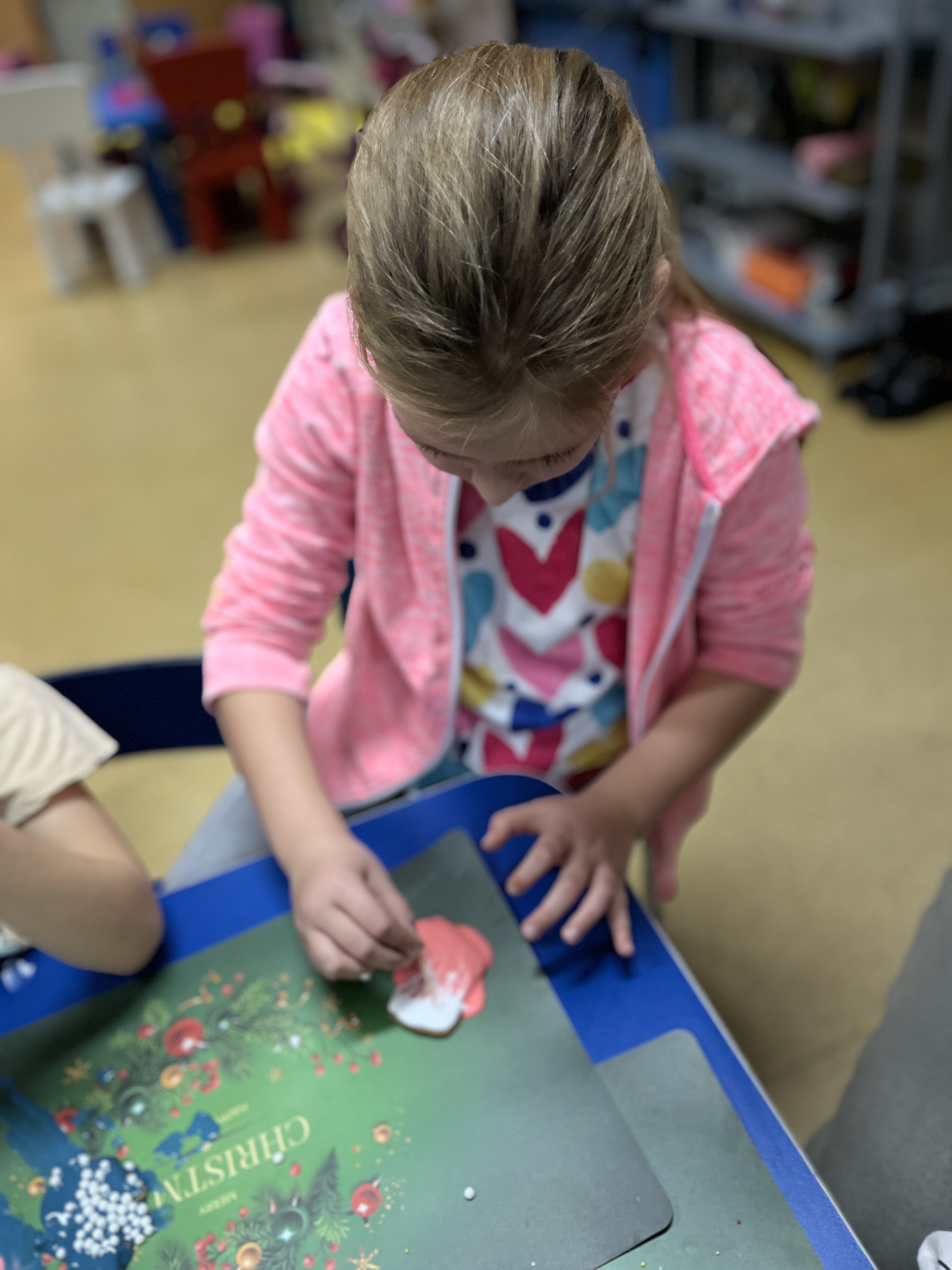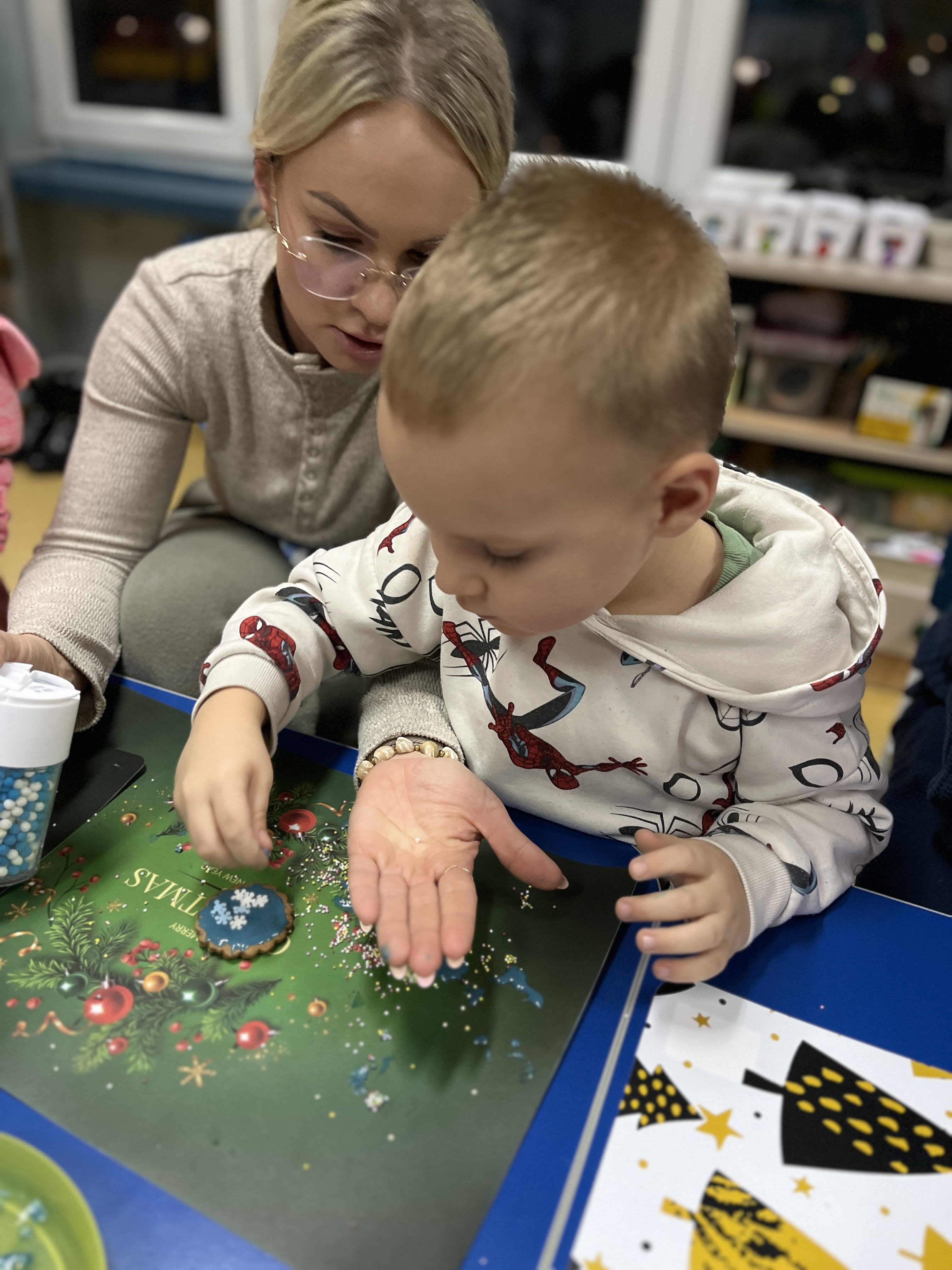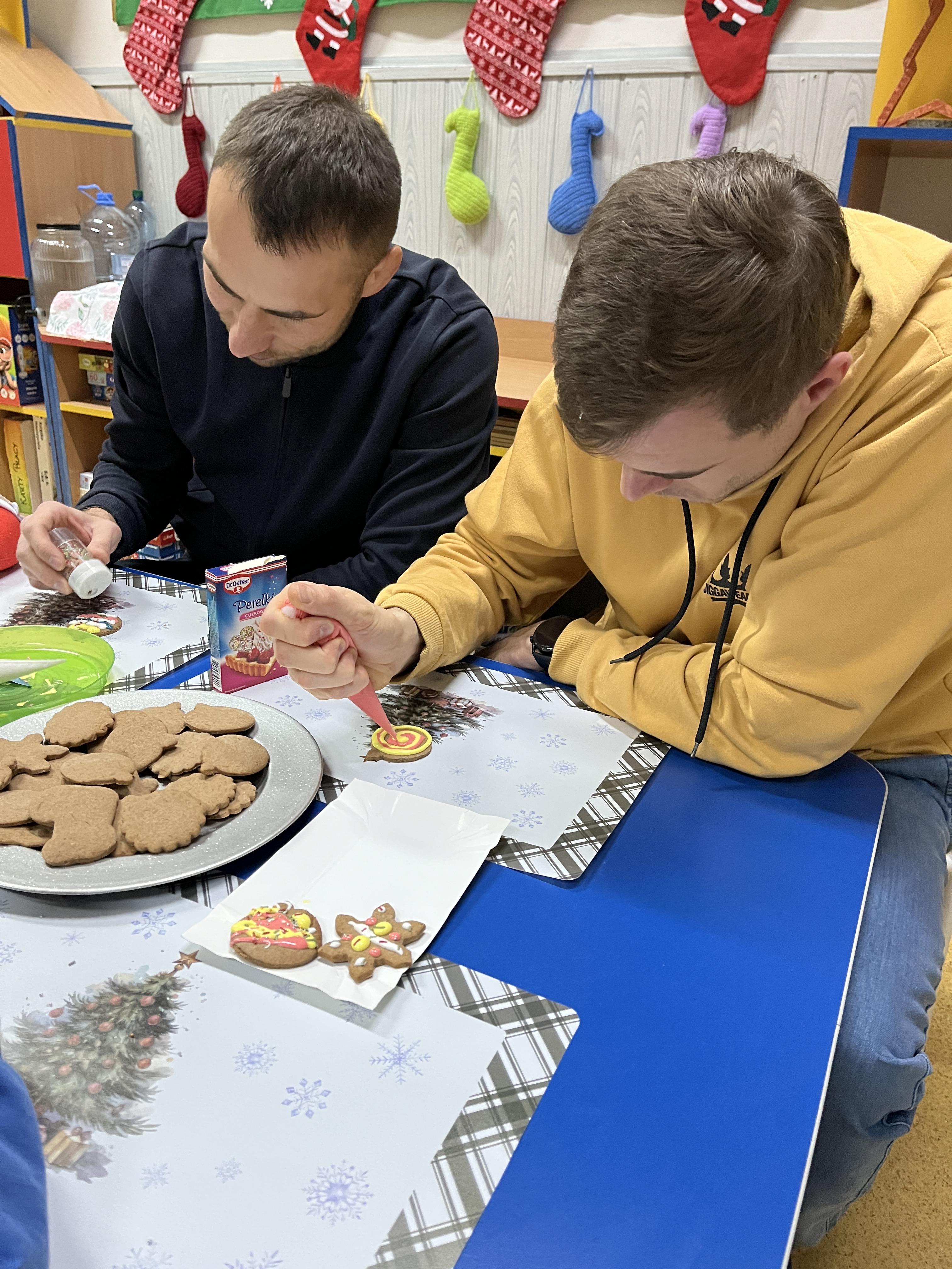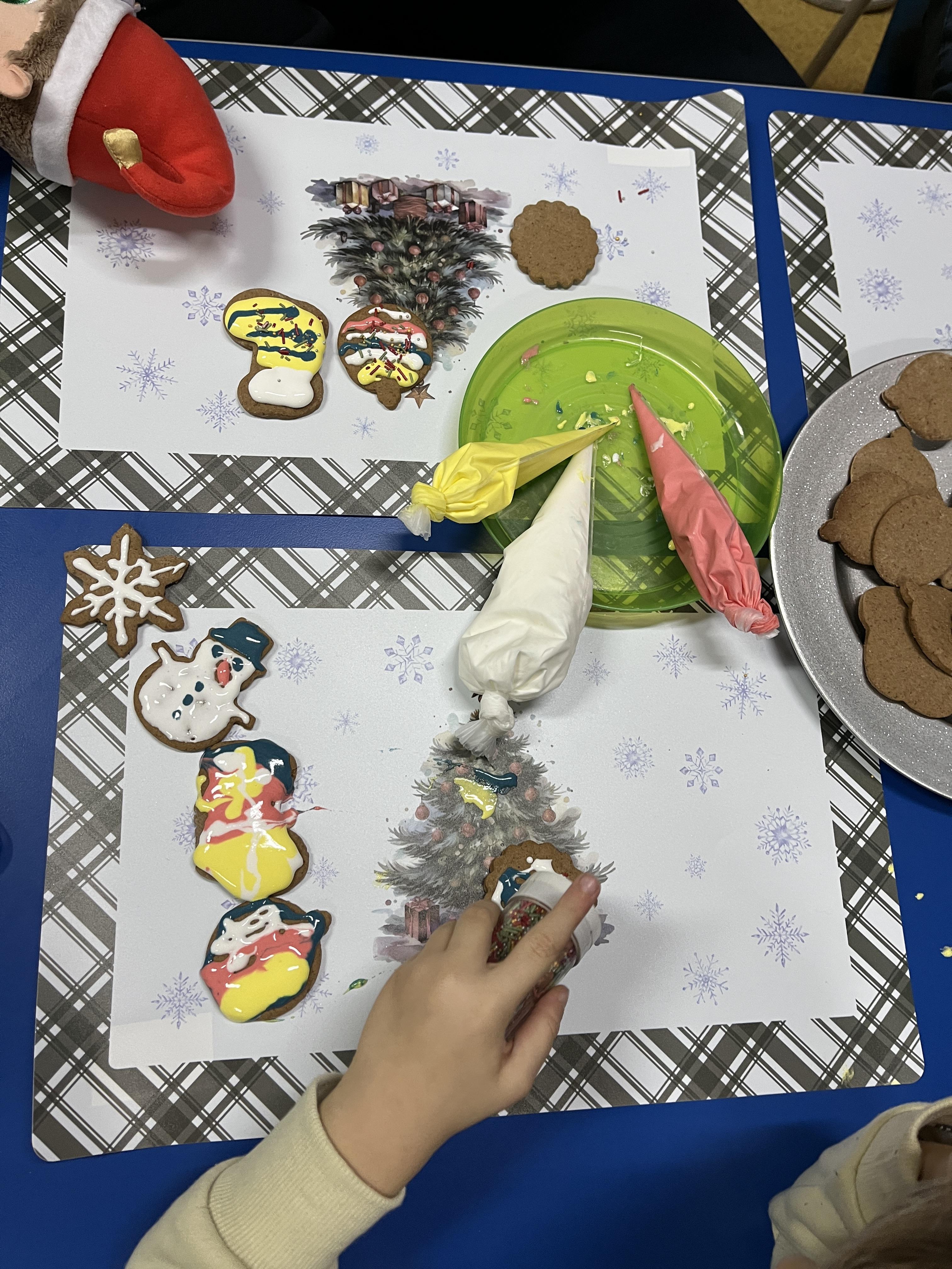 Kolejnym punktem było dekorowanie pierniczków, które dzieci przygotowały w poprzednim tygodniu. Atmosfera była swobodna, pełna uśmiechu, a zapach lukru i przypraw korzennych tylko dodawał uroku. Trudno było się powstrzymać przed spróbowaniem własnych dzieł. Te słodkości trafią na przedszkolny kiermasz już 8 grudnia.